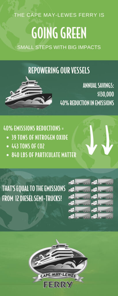 By successfully working with the State of New Jersey, we’ve been able to identify areas for environmental improvement and are continuing to implement green business practices that not only impact the Ferry, but all of those who live and visit Cape May County.